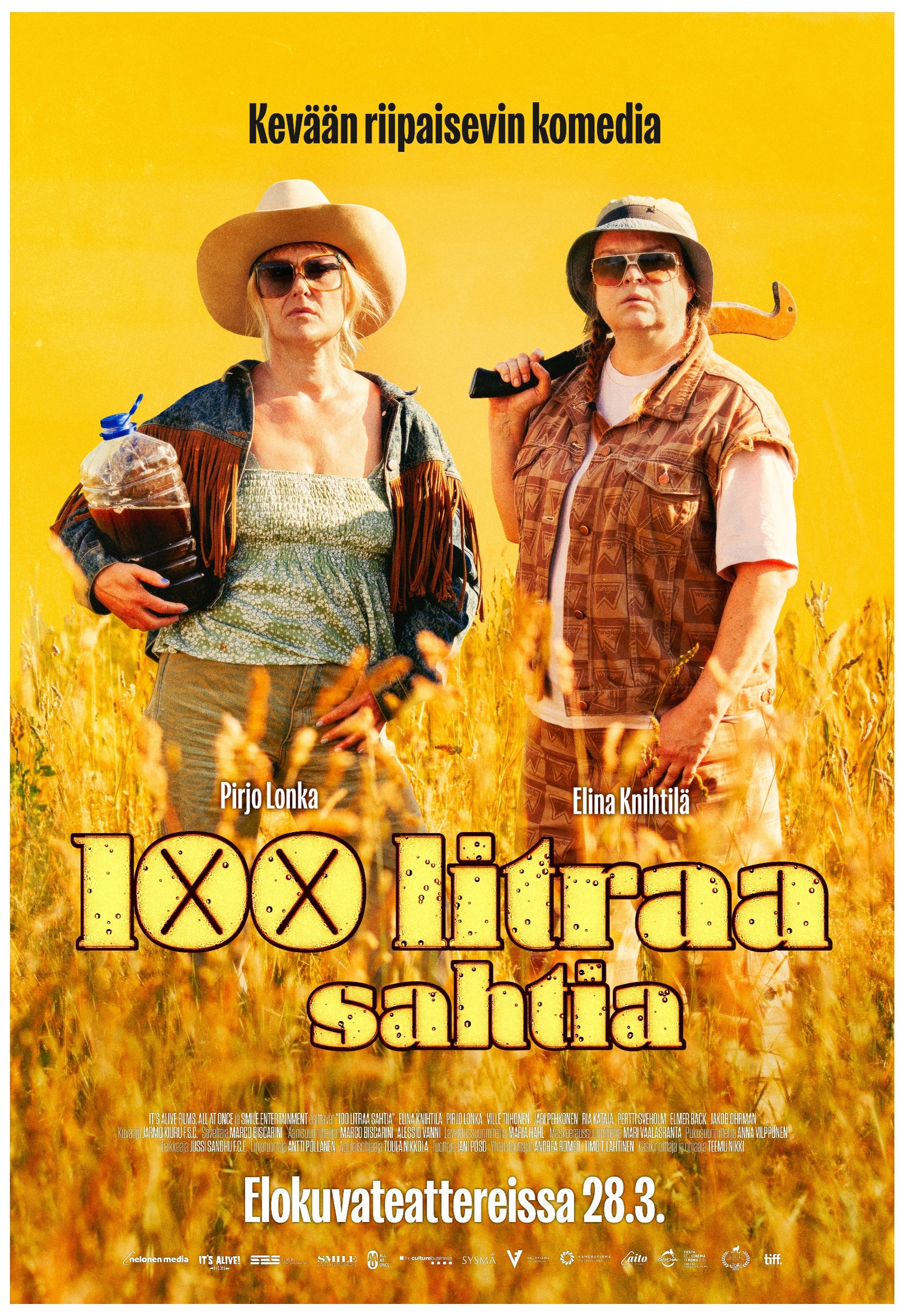 100 litraa sahtia on maailman sahtipääkaupunki Sysmään sijoittuva komedia, jossa siskokset Pirkko (Elina Knihtilä) ja Taina (Pirjo Lonka) ovat jatkaneet sukunsa pitkää perinnettä sahdin valmistajina. Kylällä jokainen haluaa osansa maineikkaasta juomasta, vaikka maksukykyä ei aina löytyisikään. Yllättäen kotikonnuille tekee paluun sisarustrion kolmas – Päivi (Ria Kataja), ja tilaa siskoiltaan häihinsä ei enempää eikä vähempää kuin sata litraa sahtia. Pirkko ja Taina panevat tuumasta toimeen täydellisen satsin valmistamiseksi. Pelissä on sekä perhesuhteet että maine. Prosessiin kuuluva maistelu kuitenkin venähtää, ja Sysmän kulta hulahtaa kokonaisuudessaan itse panijoiden sekä kyläläisten kitusiin. Pian häihin on enää alle kaksi vuorokautta aikaa, ja siskosten on keksittävä keino miten toimittaa juhliin luvatut sahdit. Alkaa taistelu aikaa vastaan, ja tilanteen korjaamiseksi käytetään kaikki mahdolliset keinot.