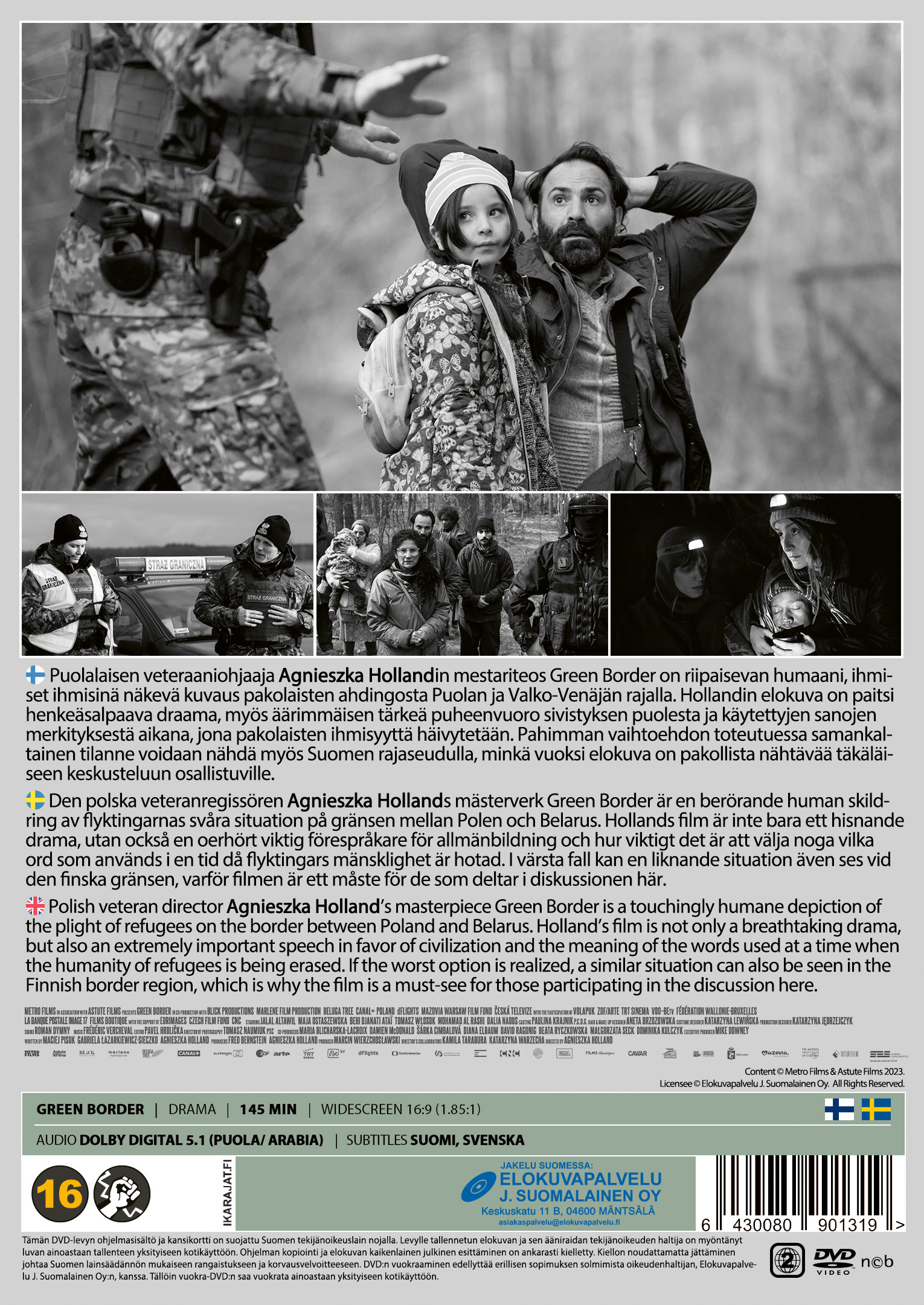 Puolalaisen veteraaniohjaaja Agnieszka Hollandin mestariteos ”Green Border” on riipaisevan humaani, ihmiset ihmisinä näkevä kuvaus pakolaisten ahdingosta Puolan ja Valko-Venäjän rajalla. Hollandin elokuva on paitsi henkeäsalpaava draama, myös äärimmäisen tärkeä puheenvuoro sivistyksen puolesta ja käytettyjen sanojen merkityksestä aikana, jona pakolaisten ihmisyyttä häivytetään. Pahimman vaihtoehdon toteutuessa samankaltainen tilanne voidaan nähdä myös Suomen rajaseudulla, minkä vuoksi elokuva on pakollista nähtävää täkäläiseen keskusteluun osallistuville.