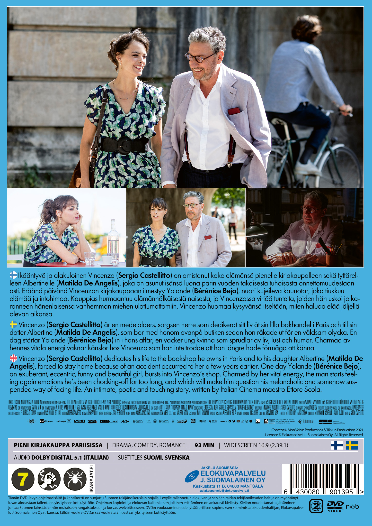 ”Pieni kirjakauppa Pariisissa” pohjautuu eurooppalaisen elokuvan voimahahmon Ettore Scolan (”Illallinen”, ”Vihollinen naapurissa”) viimeiseen käsikirjoitukseen. Elokuvan on ohjannut Scolan ystävä Sergio Castellitto, joka myös itse näyttelee toisen pääroolin. Bérénice Bejo puolestaan sai Oscar-, Golden Globe- ja BAFTA-ehdokkuudet roolistaan elokuvassa ”The Artist”.