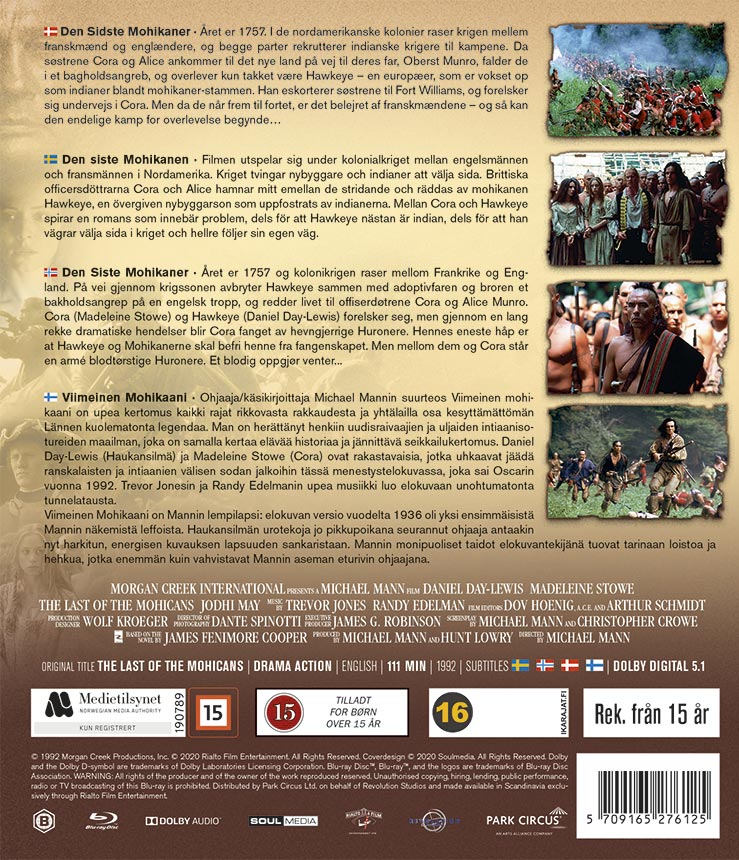 Ohjaaja/käsikirjoittaja Michael Mannin suurteos Viimeinen mohikaani on upea kertomus kaikki rajat rikkovasta rakkaudesta ja yhtälailla osa kesyttämättömän Lännen kuolematonta legendaa. Man on herättänyt henkiin uudisraivaajien ja uljaiden intiaanisotureiden maailman, joka on samalla kertaa elävää historiaa ja jännittävä seikkailukertomus. Daniel Day-Lewis (Haukansilmä) ja Madeleine Stowe (Cora) ovat rakastavaisia, jotka uhkaavat jäädä ranskalaisten ja intiaanien välisen sodan jalkoihin tässä menestyselokuvassa, joka sai Oscarin vuonna 1992. Trevor Jonesin ja Randy Edelmanin upea musiikki luo elokuvaan unohtumatonta tunnelatausta.