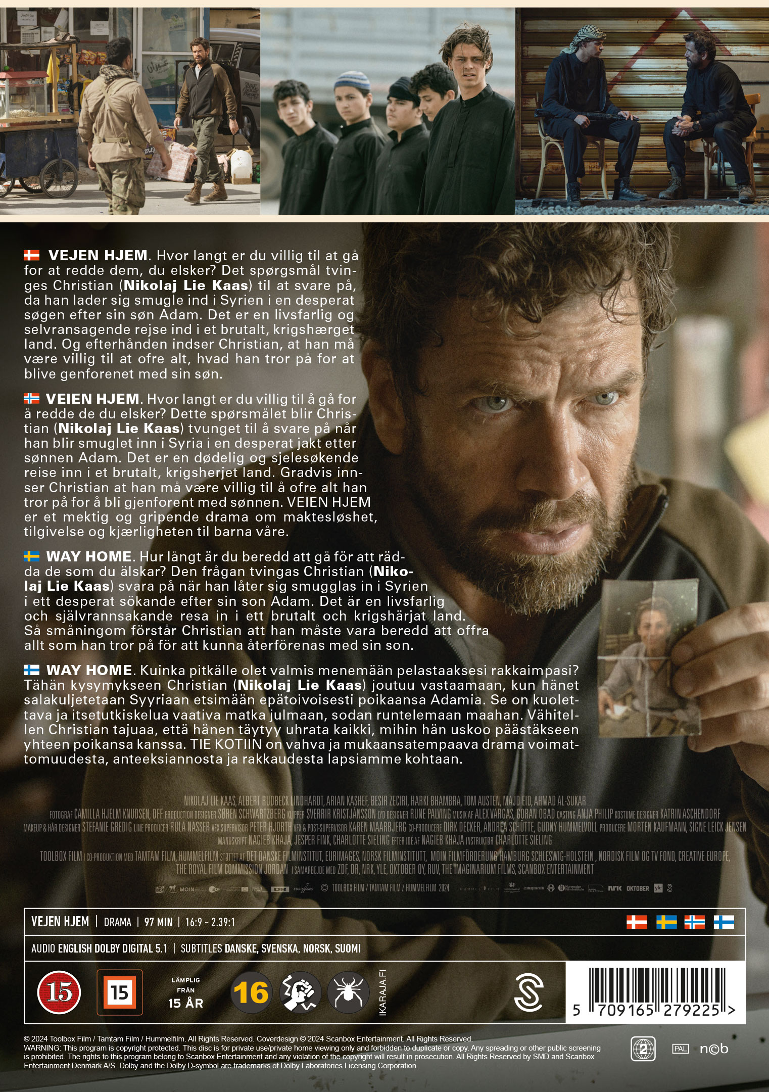 Kuinka pitkälle olet valmis menemään pelastaaksesi rakkaimpasi? Tähän kysymykseen Christian (Nikolaj Lie Kaas) joutuu vastaamaan, kun hänet salakuljetetaan Syyriaan etsimään epätoivoisesti poikaansa Adamia. Edessä on kuolettava ja itsetutkiskelua vaativa matka julmaan, sodan runtelemaan maahan. Vähitellen Christian tajuaa, että hänen on uhrattava kaikki, mihin hän uskoo löytääkseen jälleen poikansa. ”Way Home” on vahva ja mukaansatempaava draama voimattomuudesta, anteeksiannosta ja rakkaudesta lapsiamme kohtaan.